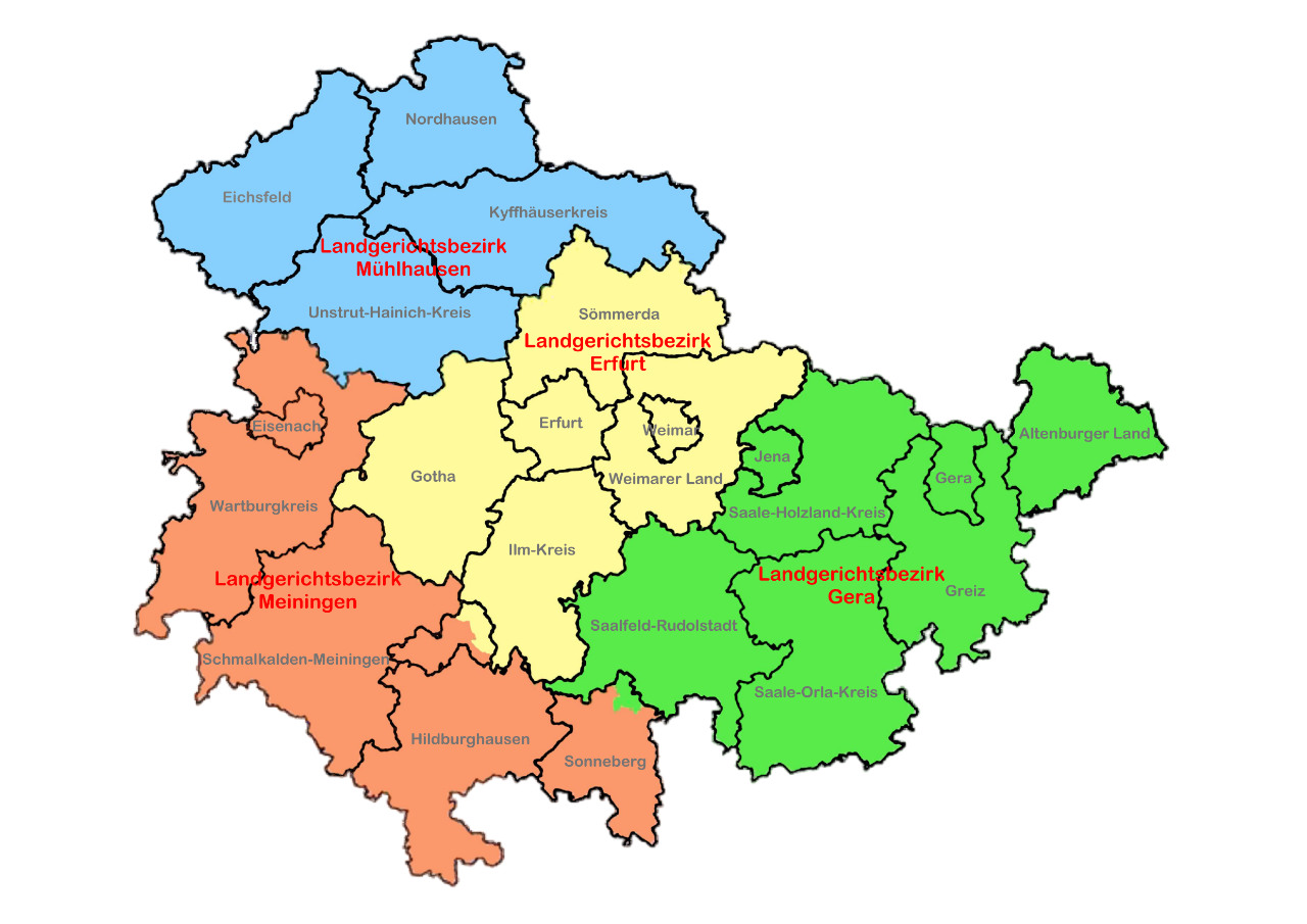 Ordentliche Gerichtsbarkeit in ThüringenLandgericht ErfurtLandgericht GeraLandgericht MeiningenLandgericht Mühlhausen